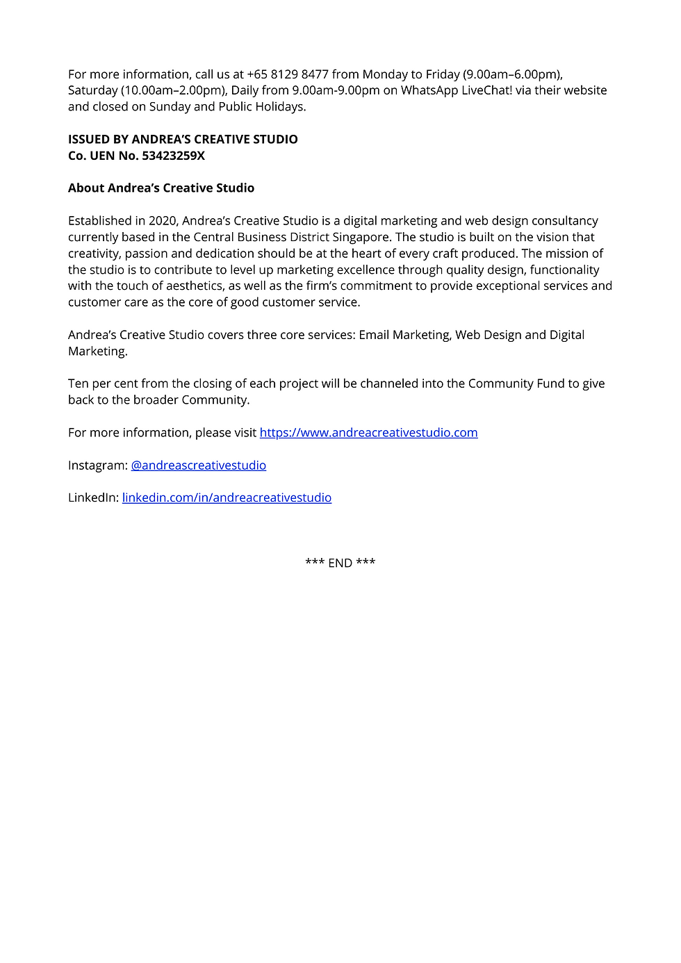ANDREA’S CREATIVE STUDIO (ACS) AGAIN NAMED ENTREPRENEUR OF THE YEAR